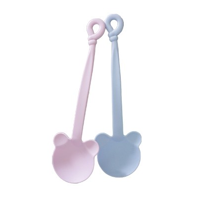 The 14 cm pastel dessert spoon with a bear shape is made with PP material. The plastic spoon heat resistant nature lets it resist up to 120°C. The spoon can be used for both hot and cold food.