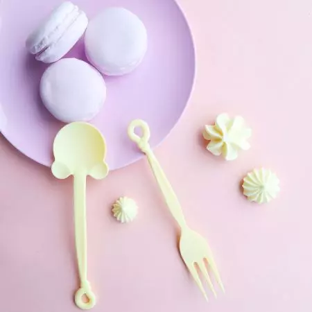 The special bear-shaped design spoon provides more options to make appetizers, desserts more lovely. The bear spoon not only enhances the look of the meal but also makes diners joyful. This cute disposable heat-resistant spoon is better for chowder and seafood risotto. You can also use the bear spoon to enjoy ice cream, sago soup and dessert.Moreover, the bear-shaped spoon comes with five special design colors: Marshmallow Pink, Cream Puff, Lilac Icing, Cotton Candy Blue and Avocado Milkshake.