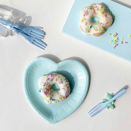 Assiette à gâteau en forme de cœur bleu bébé - Assiette à gâteau de style bleu | Fabricant de fourchettes et cuillères compostables fabriqués à Taïwan | Tair Chu