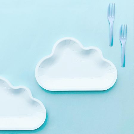 Ne pensez-vous pas qu'une fête sur le thème du ciel serait amusante à organiser ? Ça le fera! Et pour le faire, vous aurez besoin de notre nouvel ensemble d'assiettes en forme de nuage blanc qui est livré avec des fourchettes bleu barbe à papa. Cet ensemble correspondra à votre thème à 100% et les assiettes en forme de nuage apporteront une atmosphère volante à la fête. De plus, les fourchettes françaises bleues seront un atout car elles feront la différence par rapport à tous vos événements précédents. Ne tardez pas et saisissez l'occasion avec le nouvel ensemble de gâteau en forme de nuage et de fourchette française bleue !