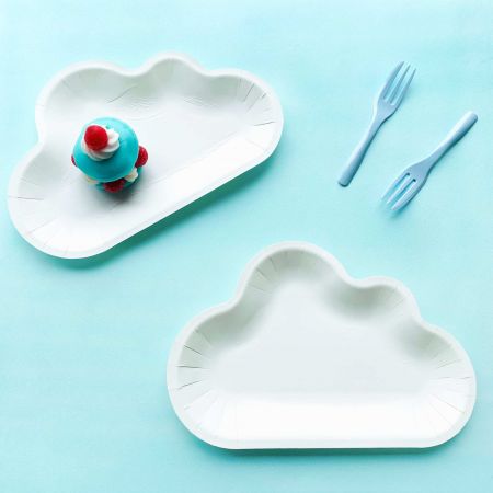 Assiette en forme de nuage et fourchette française - Fourchette à gâteau stylée et jolie assiette à gâteau | Fabricant de fourchettes et cuillères compostables fabriqués à Taïwan | Tair Chu