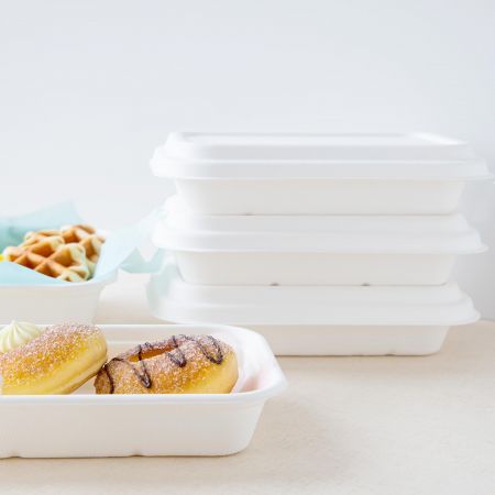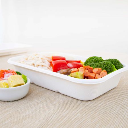 Le conteneur rectangulaire en canne à sucre est une boîte à emporter simple et efficace pour les repas. Vous pouvez y mettre n'importe quel type de repas et il est également utilisable au micro-ondes. Le conteneur rectangulaire en canne à sucre a été conçu pour les repas qui ne contiennent pas de plats d'accompagnement séparés, il conviendra donc davantage aux repas de type occidental.