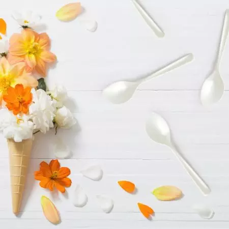 Cucchiaio a forma di foglia da 11,5 cm - Cucchiaio per yogurt | Produttore di forchette e cucchiai compostabili Made in Taiwan | Tair Chu