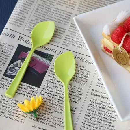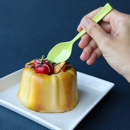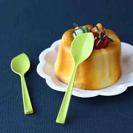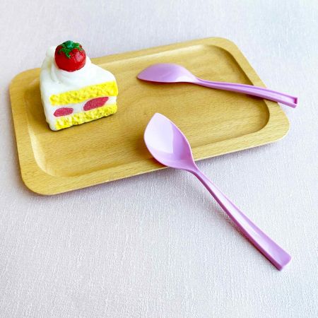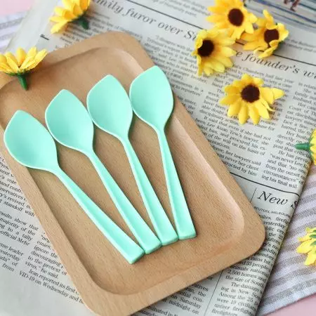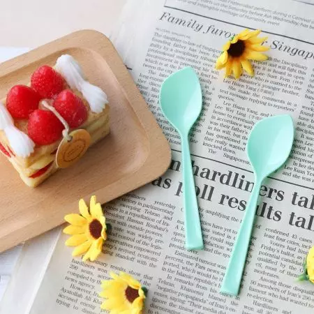 Il cucchiaio a foglia da 11,5 cm è adatto per lo yogurt, il gelato e persino la torta. Il cucchiaio per lo yogurt è realizzato con materiale PS. Il cucchiaio colorato ha superato il test FDA di SGS.