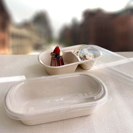 Il contenitore per alimenti ovale in bagassa e il coperchio trasparente sono l'articolo ideale per il cibo da asporto. Puoi mettere sia cibo caldo che freddo nel contenitore per alimenti ovale in bagassa, e il coperchio trasparente ti garantirà una visione chiara del contenuto in modo da non avere sorprese. I clienti tendono a sentirsi rassicurati quando possono vedere il contenuto in anticipo, quindi questo è ovviamente un vantaggio del contenitore per alimenti ovale in bagassa che forniamo.