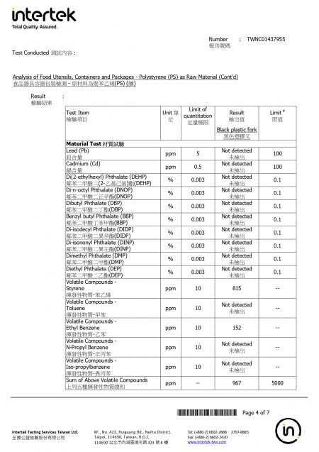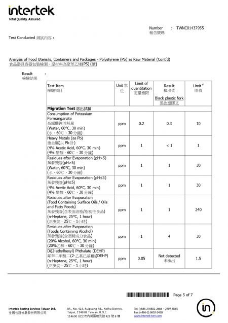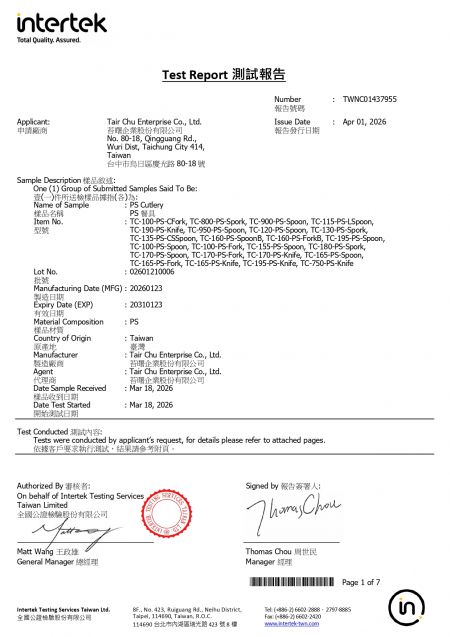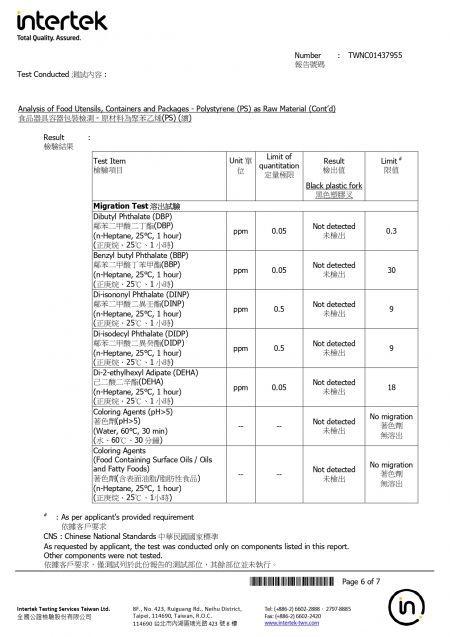 2026年苔曙食器提供のPS素材のテイクアウト用プラスチック食器がTFDA認証を取得しました。検査報告書はご請求いただければご覧いただけます。
