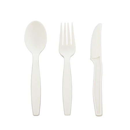 CPLAトウモロコシ製のカトラリー─フォーク、長さは16センチ、トウモロコシのデンプンCPLAで製造されており、幅広のハンドルで使いやすく、サラダやスープ麺を食べる際にも適しています。