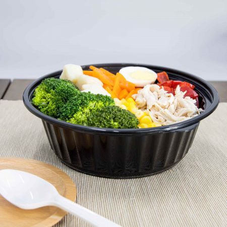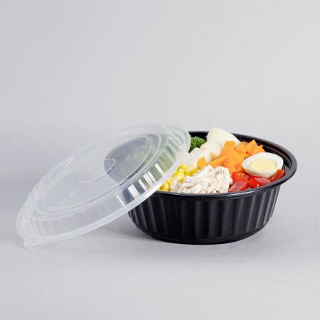 24ozの円形容器は約720mlで、5号PP耐熱素材で作られており、油や熱に強く、調理済みの食品を盛り付けることができる電子レンジ対応プラスチック容器です。いつでも温めて提供できるので、美味しい料理がまるで出来立てのようです!