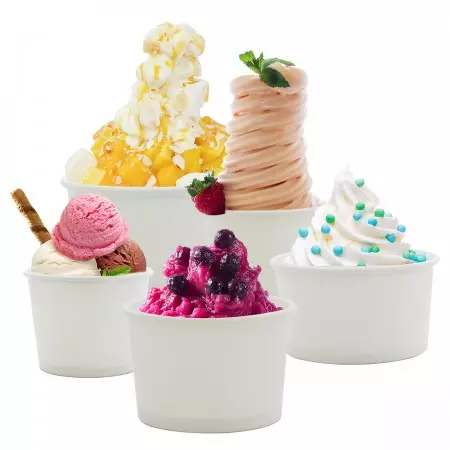 Cawan kertas 4oz sangat sesuai untuk menyajikan ais krim, gelato, atau pencuci mulut ais. Ia digunakan secara meluas di kedai ais krim atau kedai yogurt sebagai barangan saiz kecil. Dengan lapisan PE, cawan kertas 4oz mempunyai ketahanan kelembapan yang sangat baik. Ia juga tahan minyak. Cawan kertas ini untuk makanan sejuk. Disebabkan oleh isipadunya yang kecil, ia juga boleh digunakan sebagai cawan sampel.