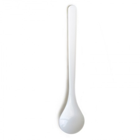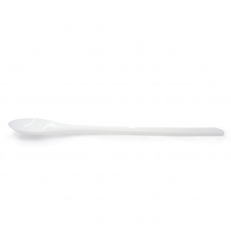 A colher de smoothie branca de 18cm tem um design de cabo longo. A colher de cor branca é feita de material PP e pode ser usada com alimentos quentes e frios.