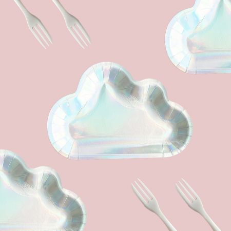 Conjunto de Pratos Iridescentes em Formato de Nuvem para Festa no Céu