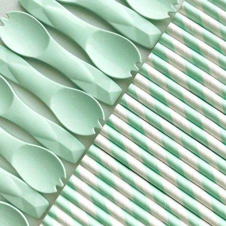A colher de pudim de 9cm na cor menta é feita de material PS. A colher verde é adequada para...