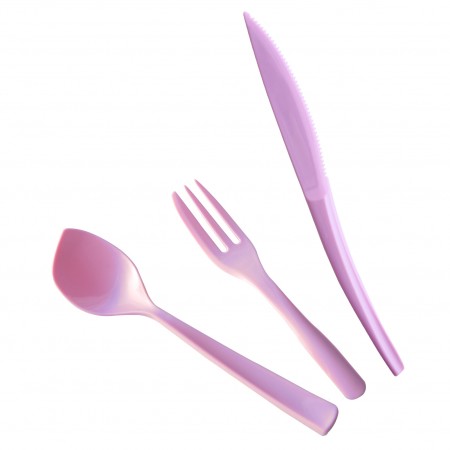 รายละเอียดช้อนส้อมสีม่วงอ่อนสำหรับอาหาร