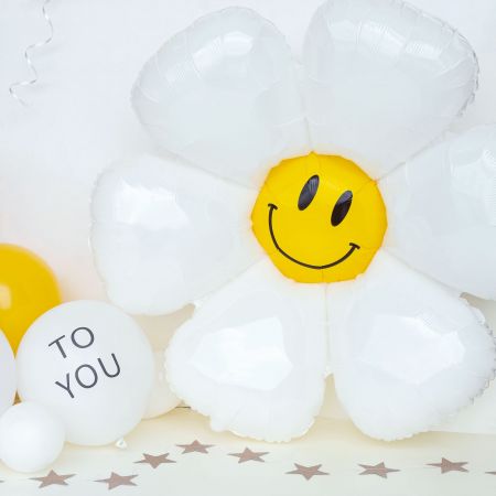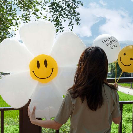 ชุดปาร์ตี้ลูกโป่งดอกเดซี่ขนาดใหญ่ - ชุดลูกโป่งดอกเดซี่หน้ายิ้ม | โรงงานช้อนส้อมย่อยสลายที่ทำในไต้หวัน | Tair Chu
