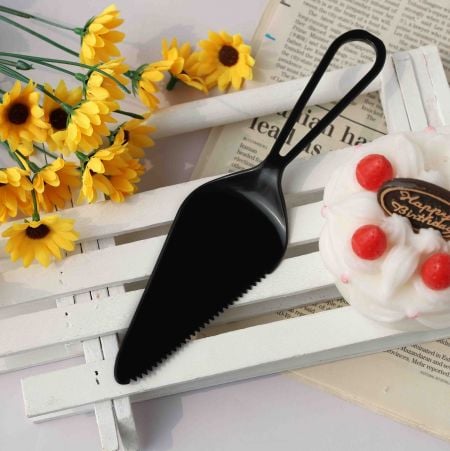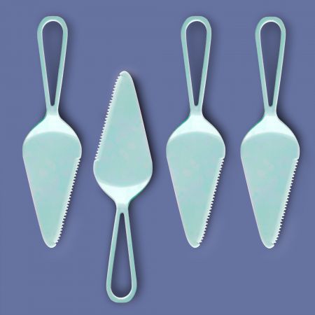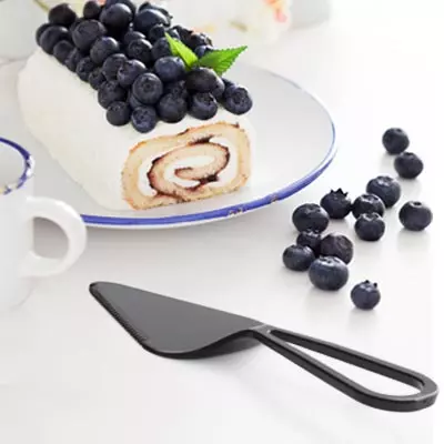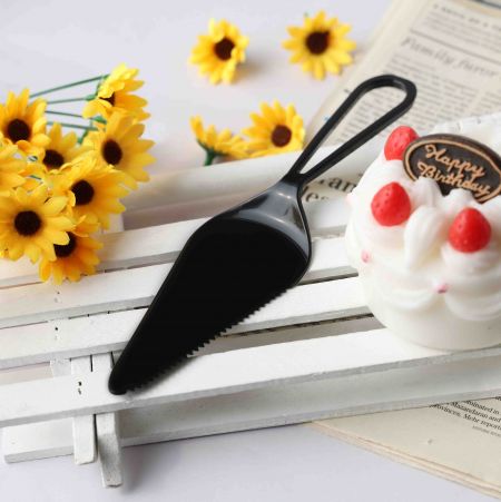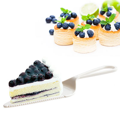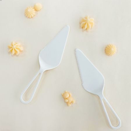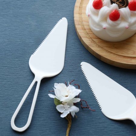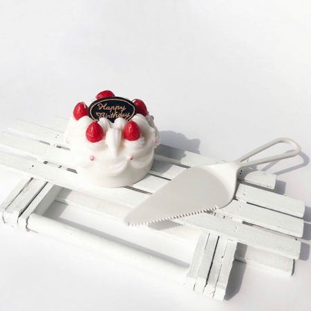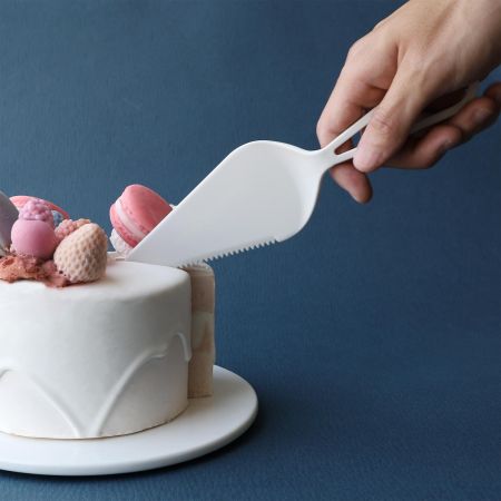 19公分高強度法式蛋糕刀是「一般小牙刀的升級版」,使用高硬度的PS材質製造。苔曙研發團隊考量使用者的經驗,設計出長度與刀柄符合人體工學的法式塑膠蛋糕刀,並採用特殊色:珍珠白色、藍莓色、巧克力色,適用於切麵包、蛋糕、貝果、糕點、鬆餅等食品。