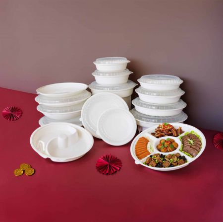 可微波12吋雙拼盤具備分格結構,可同時擺放兩款料理又不互相混味,適合搭配油蔥豆腐與炒綠花椰、糖醋里肌與蒸蛋、香煎雞腿與炒菇類等組合餐點。耐熱材質支持微波加熱,能直接加溫後上桌,省去轉換容器的步驟。29.5公分的大尺寸讓店家能在節慶外帶或團餐備料時,提供更豐富的餐點組合。 苔曙是台灣專業製造可微波12吋雙拼盤及提供塑膠免洗餐具及客製化塑膠製品設計生產服務的優良廠商(成立於西元1978年)擁有超過三十五年以上的產品開發及製造經驗,苔曙在食品包裝,無論是拋棄式餐具,餐盒、杯子或者是各式各樣的客製化產品之外,同時也提供自行開發設計的TC餐具。.